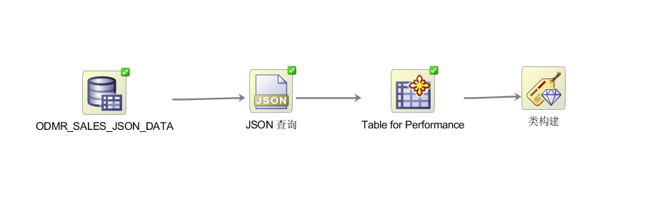 依次在工作流界面添加组件,包括:【数据源】、【JSON 查询】、【创建表和视图】、【类构建】等。