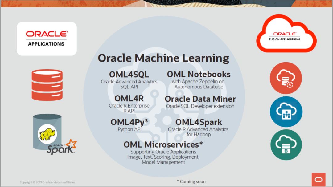 Oracle Advanced Analytics (OAA—原数据库选件),可以在本地或公有云中部署的Oracle数据库中运行,提供高级数据分析功能。