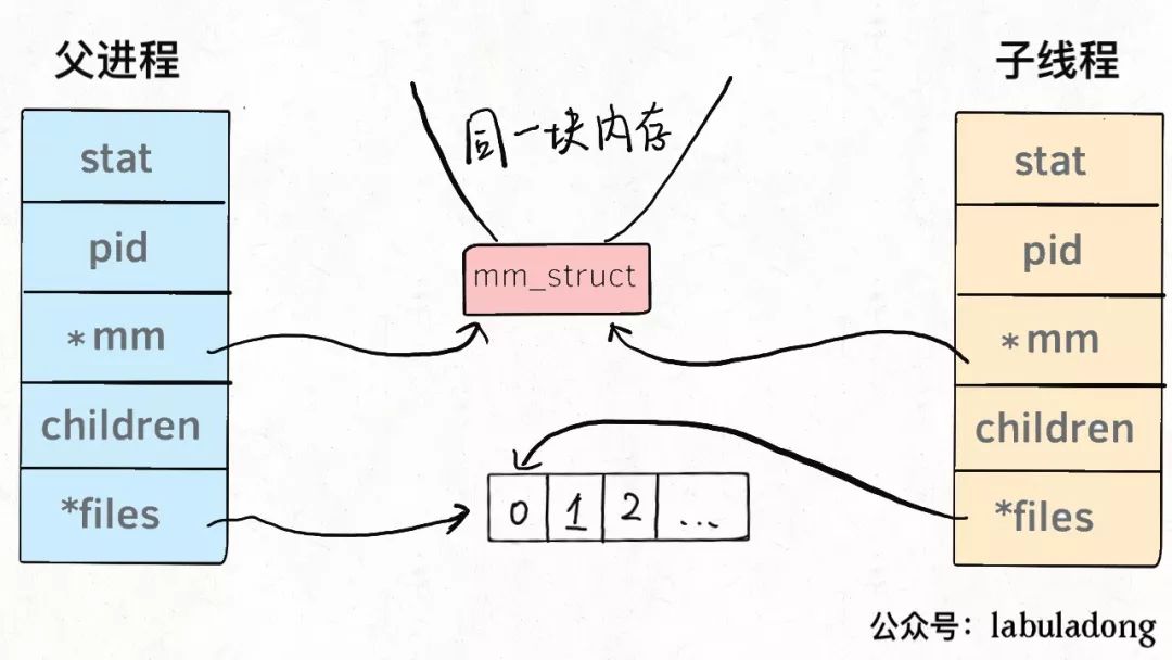 换句话说,线程看起来跟进程没有区别,只是线程的某些数据区域和其父进程是共享的,而子进程是拷贝副本,而不是共享。就比如说,mm