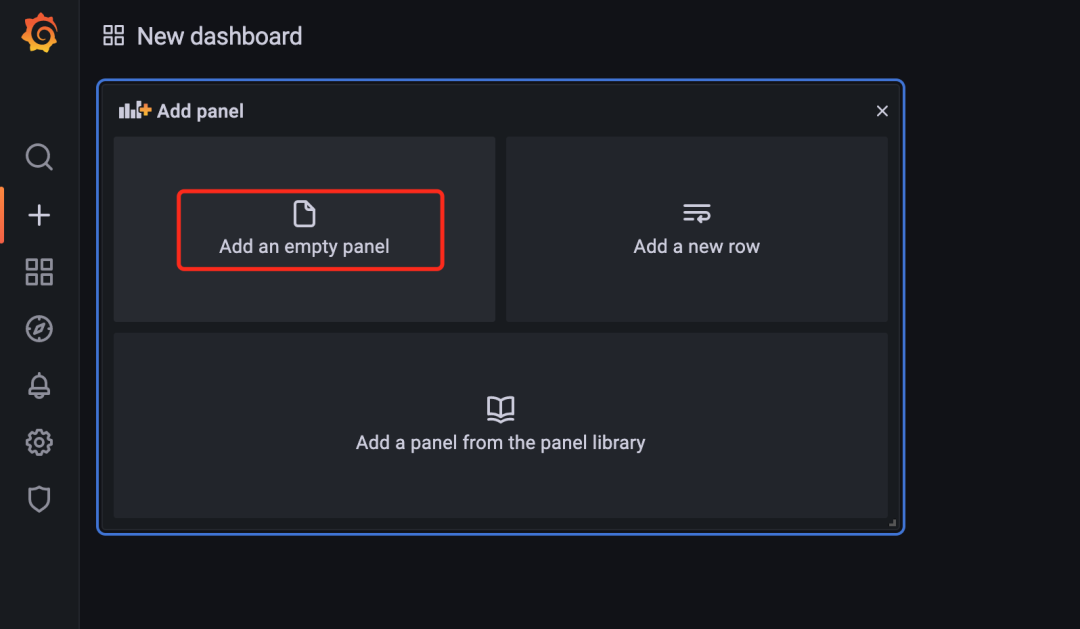 在默认创建的新的 Dashboard 中就有一个空的面板,点击 Add an empty panel