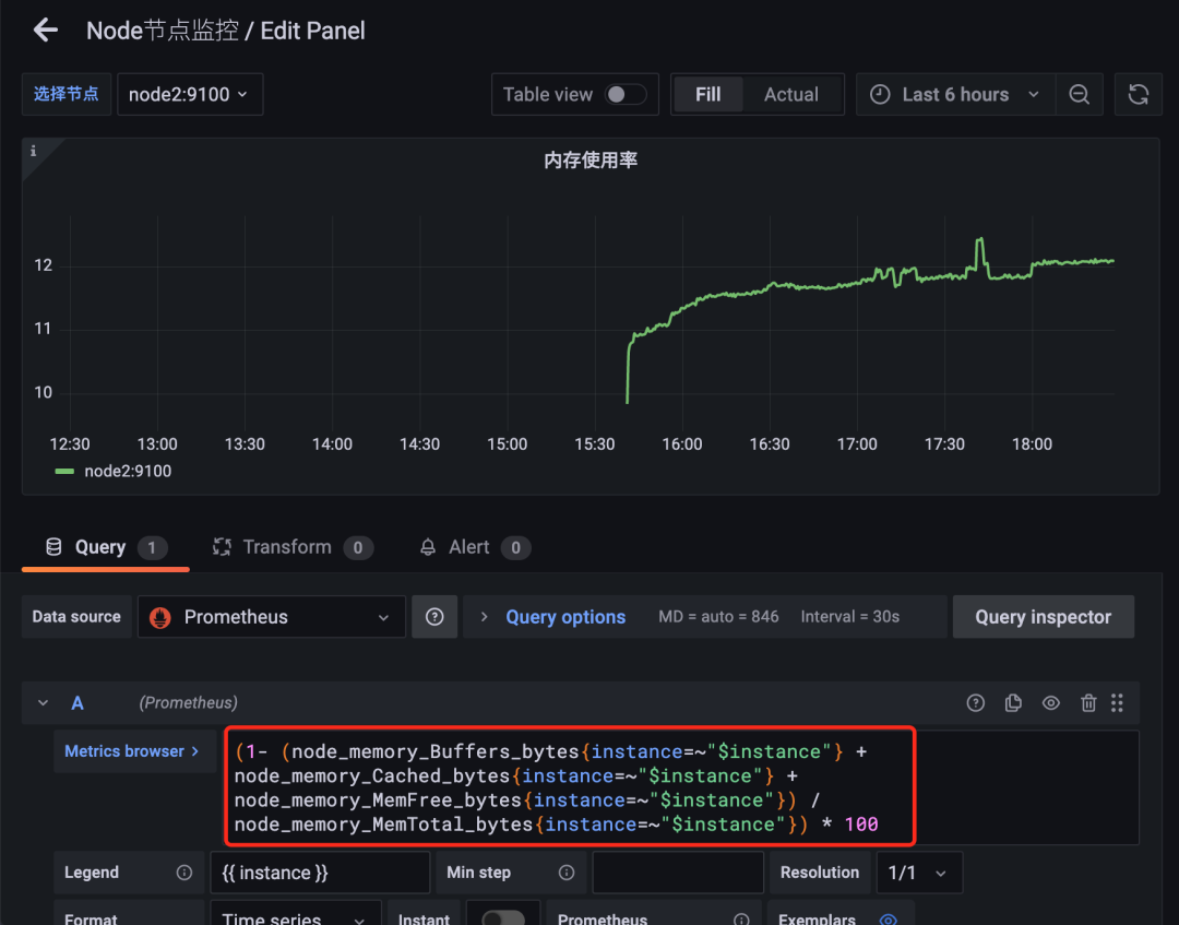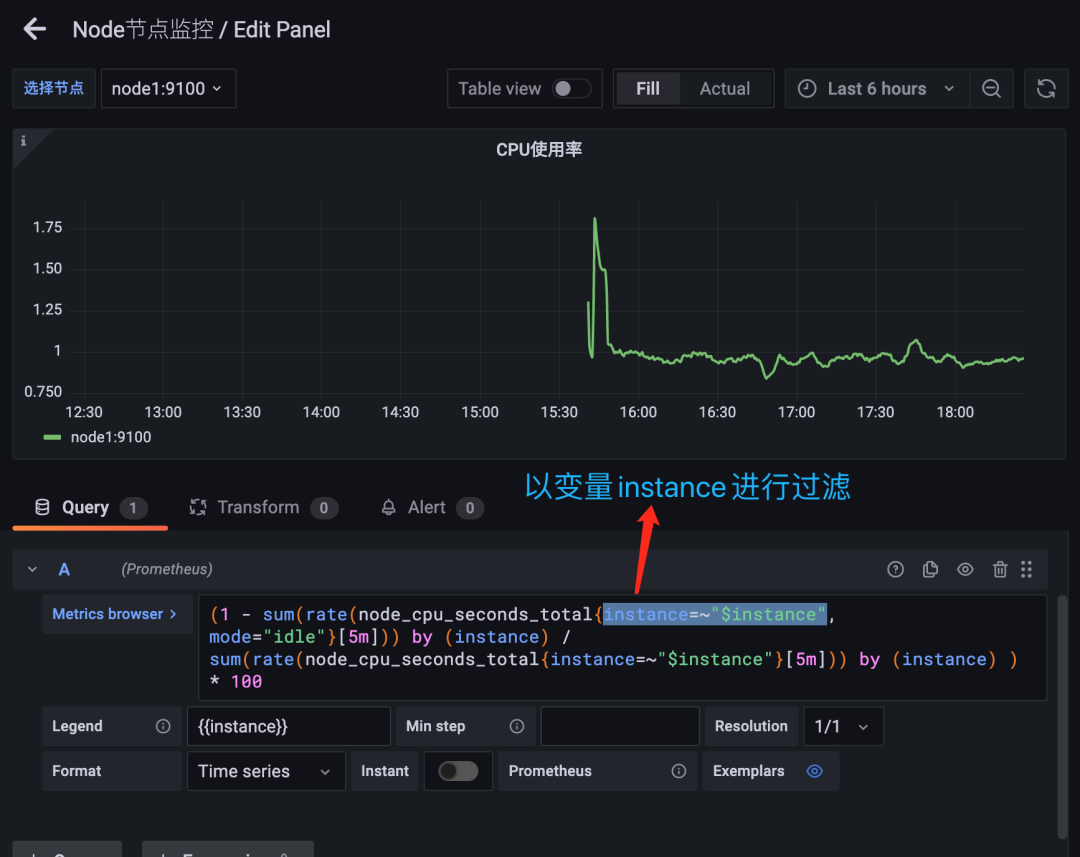 用同样的方式给内存使用率添加根据节点过滤的参数: