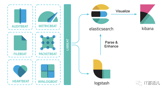 提到日志系统,一般首先想到的都是经典的ELK架构,或者现在被称为Elastic Stack。Elastic Stack架构为Elasticsearch + Logstash + Kibana + Beats的组合,其中,Beats负责日志的采集, Logstash负责做日志的聚合和处理,Elasticsearch作为日志的存储和搜索系统,Kibana作为可视化前端展示,整体架构如下图所示: