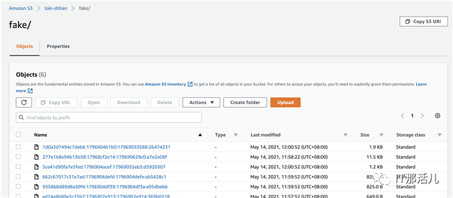 查看S3中的日志数据,如下图所示: