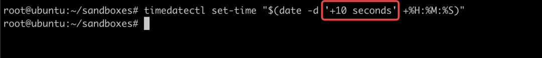 在 sleep 的同时,我们将服务器的时间向未来调整 10 秒: