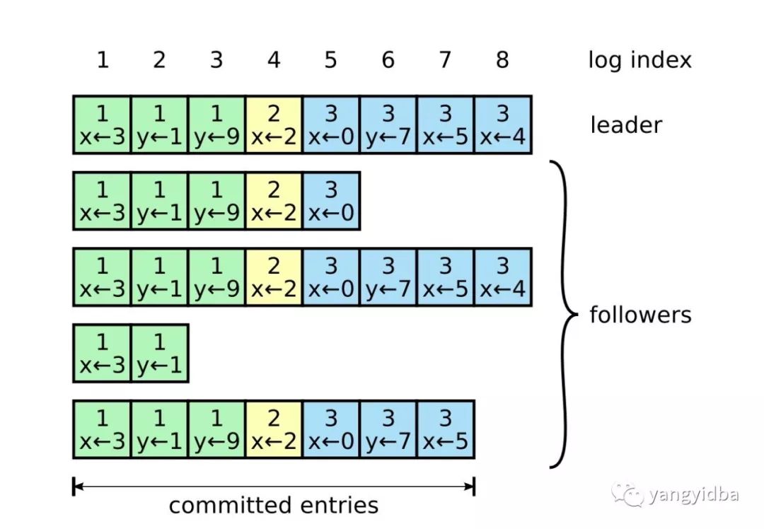 index:日志索引号,即图中最上方的数字,是严格递增的。