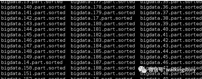 内存中维护一个极小的核心缓冲区memBuffer,将大文件bigdata按行读入,搜集到memBuffer满或者大文件读完时,对memBuffer中的数据调用内排进行排序,排序后将有序结果写入磁盘文件bigdata.xxx.part.sorted. 循环利用memBuffer直到大文件处理完毕,得到n个有序的磁盘文件: