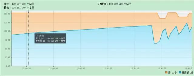 内存设置为256MB,在公司服务器上部署了服务端,使用Java VisualVM远程监控服务器堆内存。
