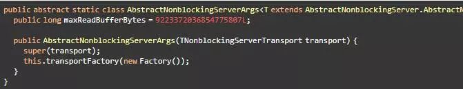 1.在构造TThreadedSelectorServer的时候,增加args.maxReadBufferBytes = 1*1024 * 1024L;也就是说修改maxReadBufferBytes的大小,设置为1MB。