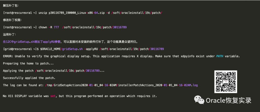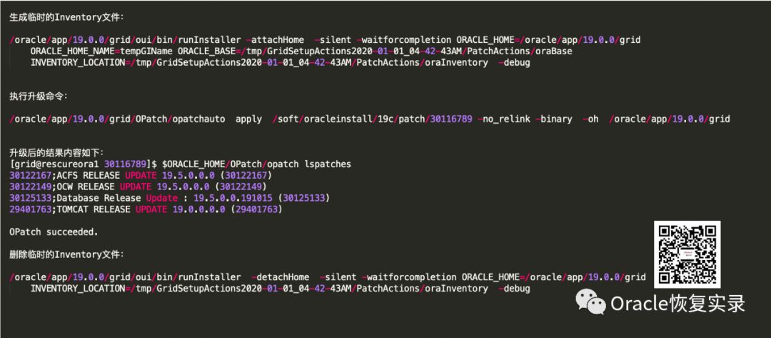 export PATCH_PATH=/soft/oracleinstall/19c/patch/30116789 && cd $PATCH_PATH && awk -vRS=" +</subpatch>| +<subpatches>" '/cluster/{match($0,/ patch_id=\"([^"]+)/,a);print a[1]}' bundle.xml |xargs -I {} $ORACLE_HOME/OPatch/opatch napply $PATCH_PATH/{} -local -silent -oh $ORACLE_HOME -no_relink -noreport
