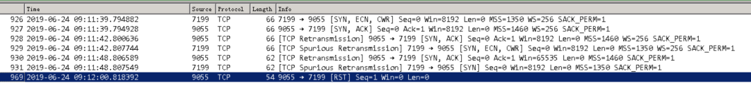 3 196000.984728 9055 TCP 54 9055 鈫?55516 [RST, ACK] Seq=762 Ack=717 Win=0 Len=0