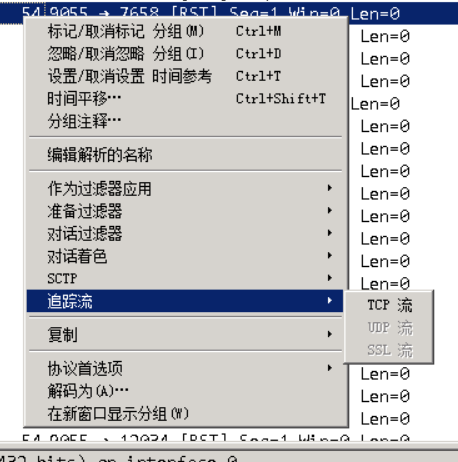 上选择指定的包右键在弹出的菜单中选择追踪流