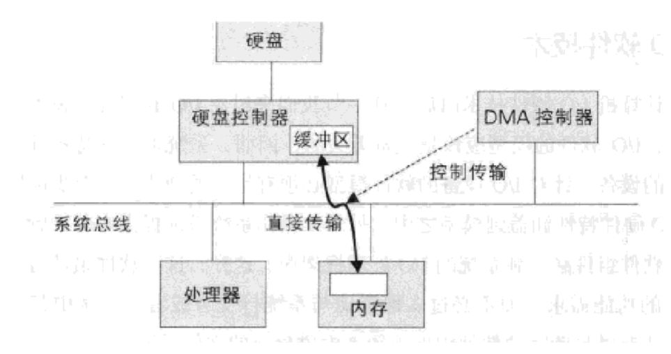 设备控制器可以通过内存映射I/O的方式将设备的内存与主存映射,通过内存映射I/O后,处理器访问的就不是主存而是设备控制器的寄存器内存。但是这种方式的访问效率并不高,不适合大数据量I/O读写。通常硬盘和网络驱动器采用直接访问内存(DMA)的方式进行大量数据的I/O操作。DMA需要硬件支持,硬件会有DMA控制器,在硬件执行I/O操作的时候,不会占用CPU的指令周期,DMA控制器会和设备进行I/O操作。当数据传输完成后,DMA则会通知处理器I/O操作完成。