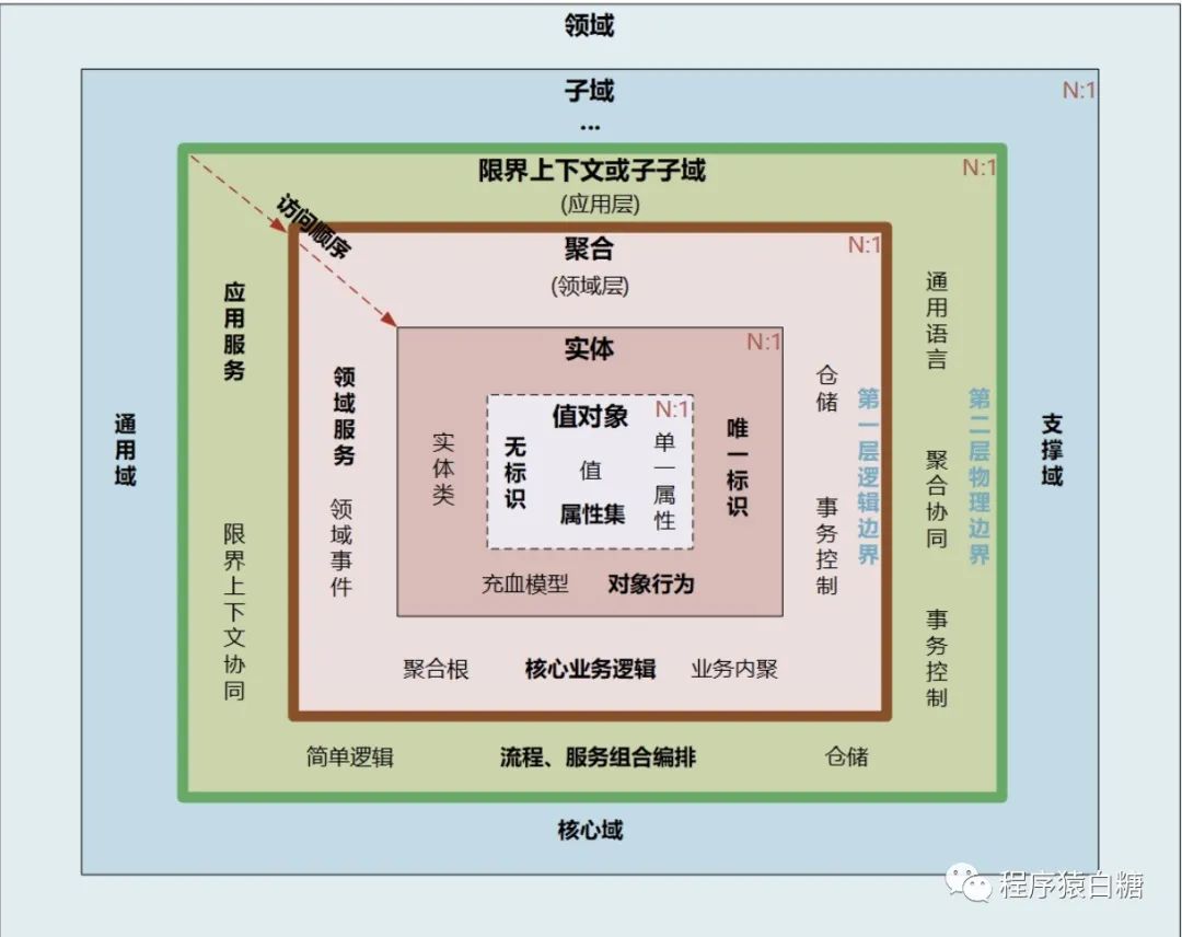领域:在研究和解决业务问题时,DDD 会按照一定的规则将业务领域进行细分,当领域细分到一定的程度后,DDD 会将问题范围限定在特定的边界内,在这个边界内建立领域模型,进而用代码实现该领域模型,解决相应的业务问题。简言之,DDD 的领域就是这个边界内要解决的业务问题域。