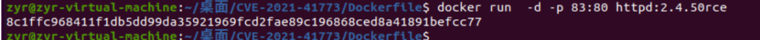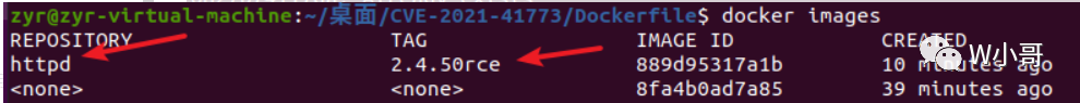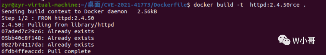 以下示例,通过目录下的 Dockerfile 构建一个 httpd:2.4.50rce(镜像名称:镜像标签)。