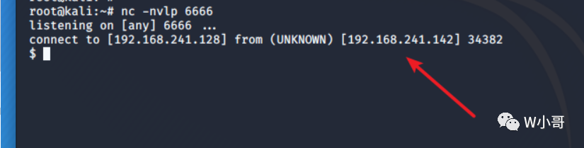 此时 kali 接收到反弹的 shell