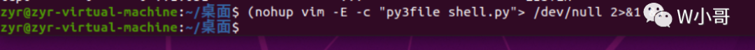 (nohup vim -E -c "py3file shell.py"> dev/null 2>&1 &)#将nohup的执行结果输出到/dev/null中#其中/dev/null在linux中代表空设备,结果输出到空设备也就是丢弃nohup的执行结果。#“2”在linux中代表错误输出,“1”在linux中代表标准输出,在此处也就是nohup的输出。2>&1表示将错误输出绑定到标准输出上,在此处也就是将错误输出同样输出到空设备上不进行显示。这样,无论nohup执行结果是否正确,都不会有输出。