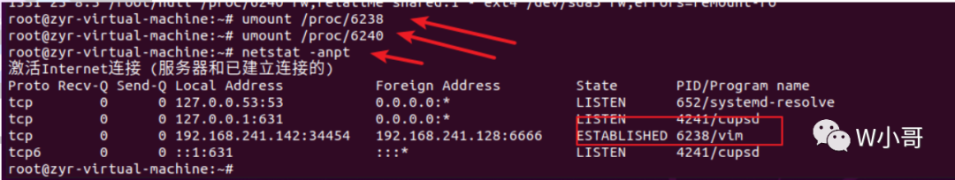 然后使用umount命令,取消对 6238、6240 的挂载,确认该进程是否为恶意进程。