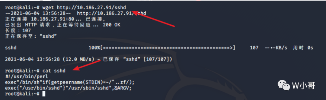 假设已拿到靶机的root权限,接下来下载后门文件sshd
