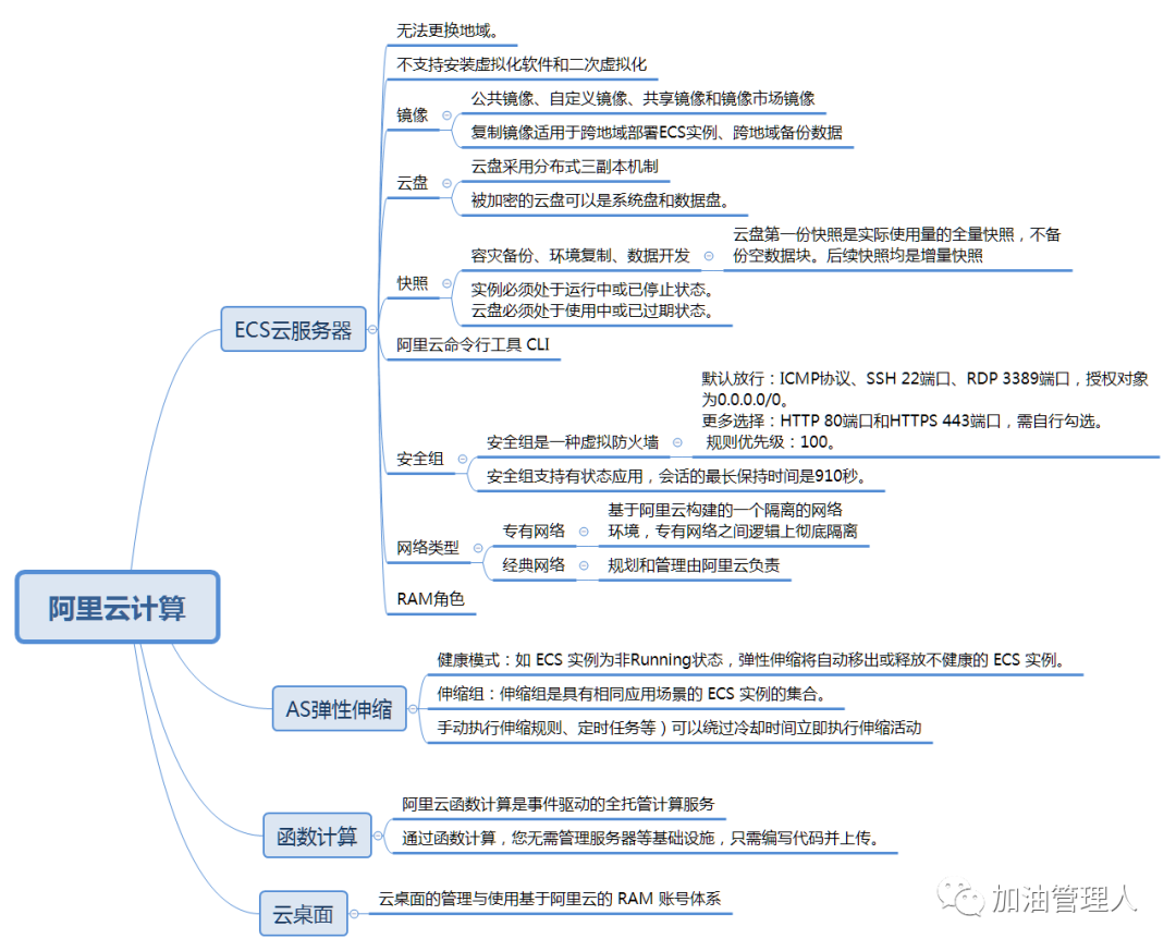 最近完成了阿里云ACE认证考试,虽然还在等成绩,不过过程相当顺利,考试的点基本都复习到。备考过程中绘制了思维导图,分享给大家。