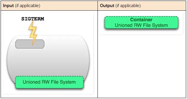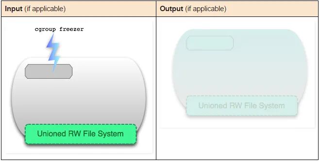 一个运行态容器(running container)被定义为一个可读写的统一文件系统加上隔离的进程空间和包含其中的进程。下面这张图片展示了一个运行中的容器。