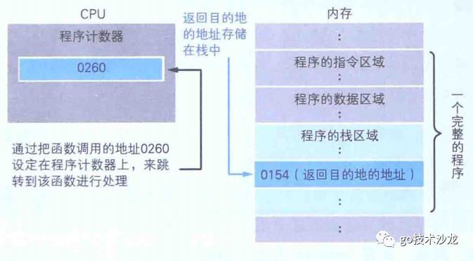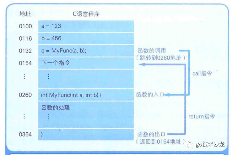 如果这里也使用之前的机器指令(jump),那么在函数执行完之后则没有办法返回到函数的执行原点继续往下执行
