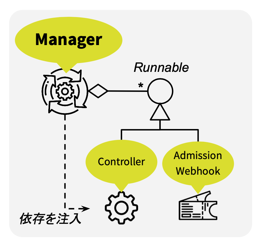 中使用了一个 Manager 的接口来管理 Controller,除了控制器其实还可以管理 Admission Webhook