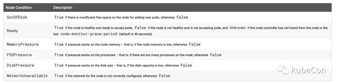 在 k8s 中,一个 node 的状态包含以下几个信息: