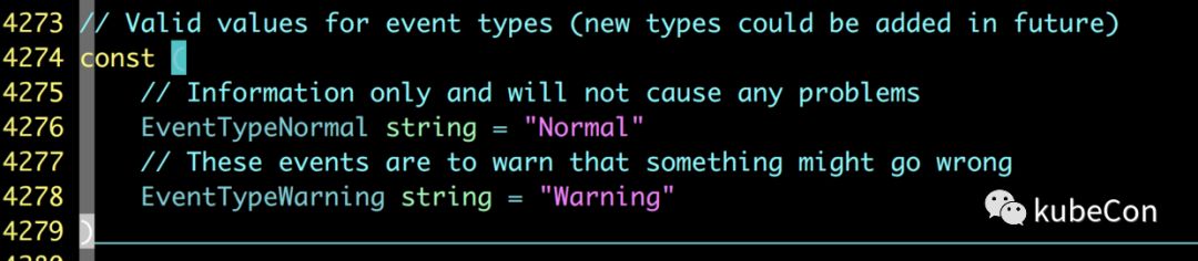 k8s 中 events 目前只有两种类型:"Normal" 和 "Warning":