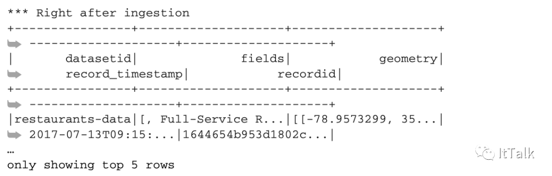 到目前为止,这种摄取与第1章摄取简单的书单,以及第2章摄取作者名单的方法类似。摄取的方式总是一样的,第7、8、9章提供了进一步的细节。让我们更深入地了解一下dataframe。你可以通过使用printSchema()将模式打印到标准输出(stdout)。结果如下。