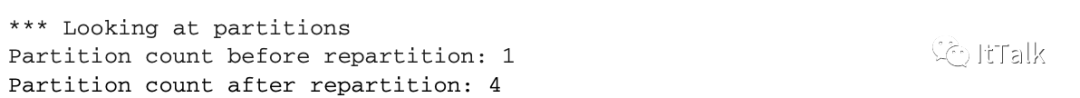 分区会被创建,数据会根据你的基础设施(节点数量和数据集的大小)自动分配到每个分区。由于数据集的大小和我使用的笔记本电脑,在这个方案中只使用一个分区。你可以通过下面的代码找出你有多少个分区。