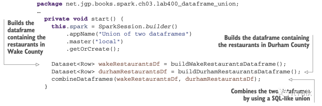 LAB 你可以从GitHub上下载代码:https://github.com/jgperrin/net.jgp.books.spark.ch03。这是包net.jgp.books.spark.ch03.lab230dataframeunion中的实验室#230。