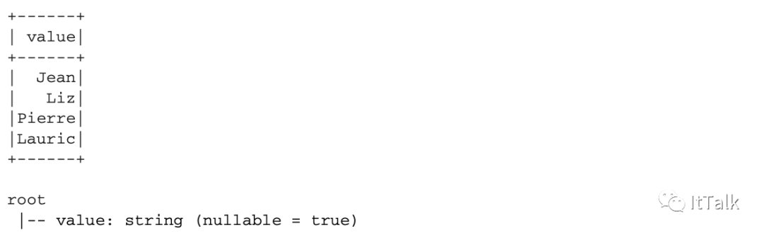 要使用dataframe的扩展方法来代替dataset,你可以通过调用toDF()方法轻松地将一个dataset转换为一个dataframe。请看实验室#310 (net.jgp.books.spark.ch03.lab310datasetto_dataframe.ArrayToDatasetToDataframeApp)。它在start()方法的结尾处添加了以下片段。