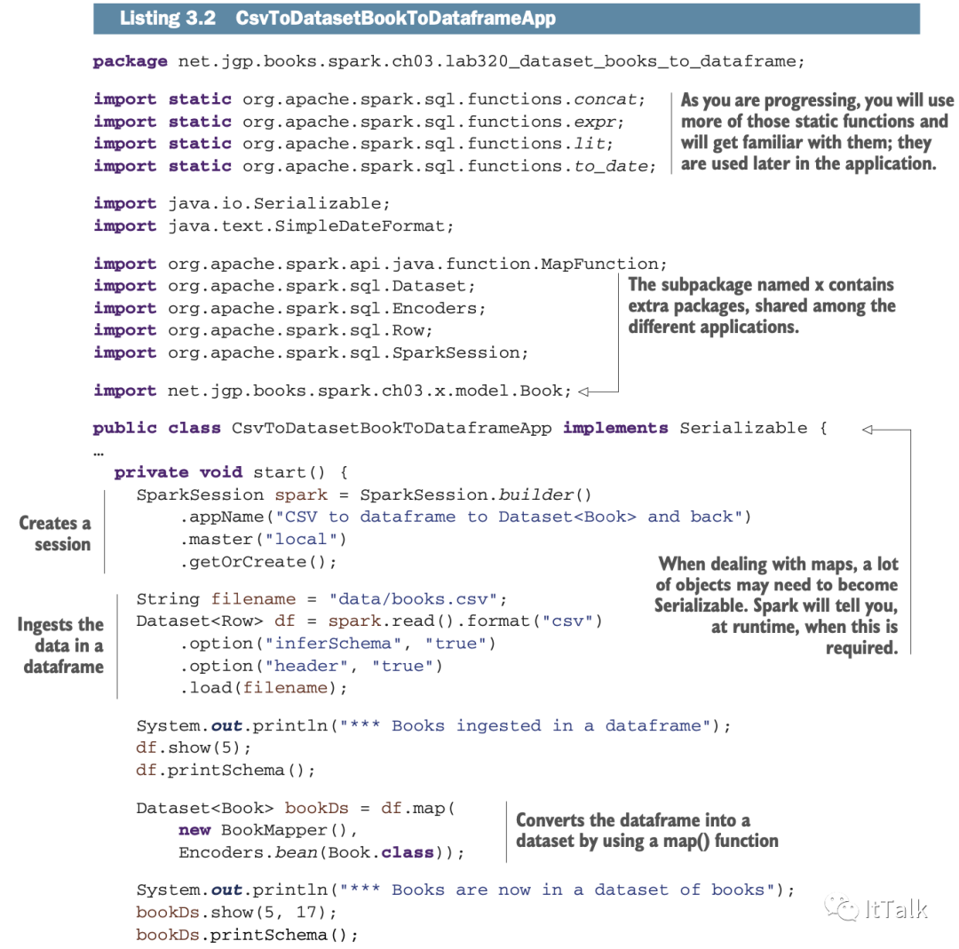 LAB 你可以从GitHub下载代码,网址是https://github.com/jgperrin/net.jgp.books.spark.ch03。你将从包net.jgp .books.spark.ch03.lab300_dataset中的实验室#300开始。