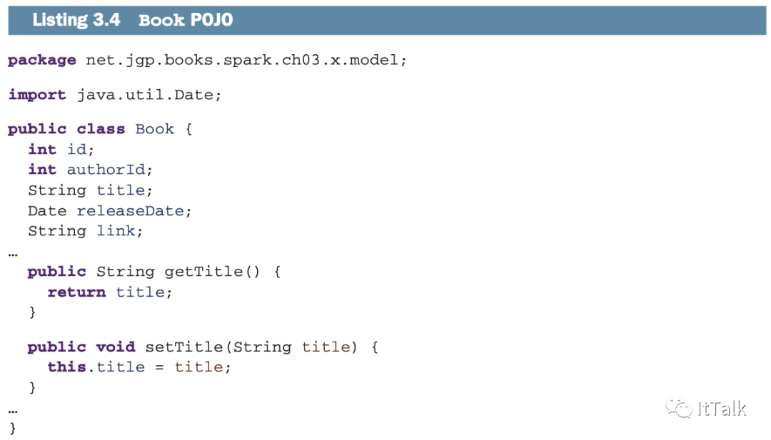 下面的列表将此骨架应用到您正在构建的BookMapper mapper类中。附录I列出了这些类型的转换的参考资料,包括类签名。