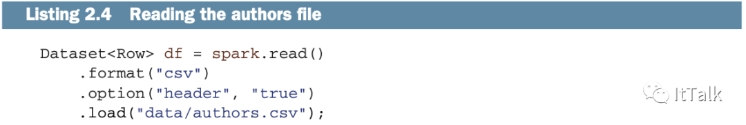清单2.1是完整的应用程序。我尽量将代码完整地呈现出来,包括导入语句,以防止你使用错误的包或类似名称的废弃类。这段代码可以从GitHub下载,网址是:https://github.com/jgperrin/net.jgp.books.spark.ch02。