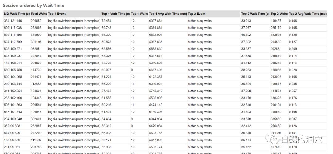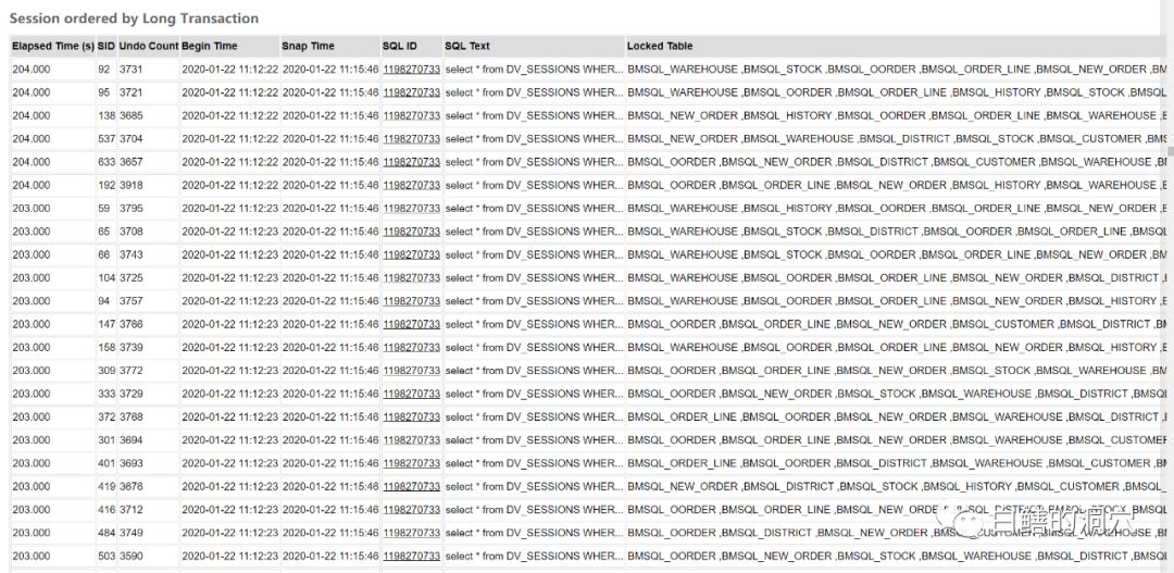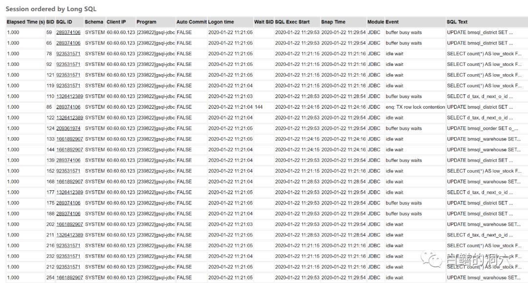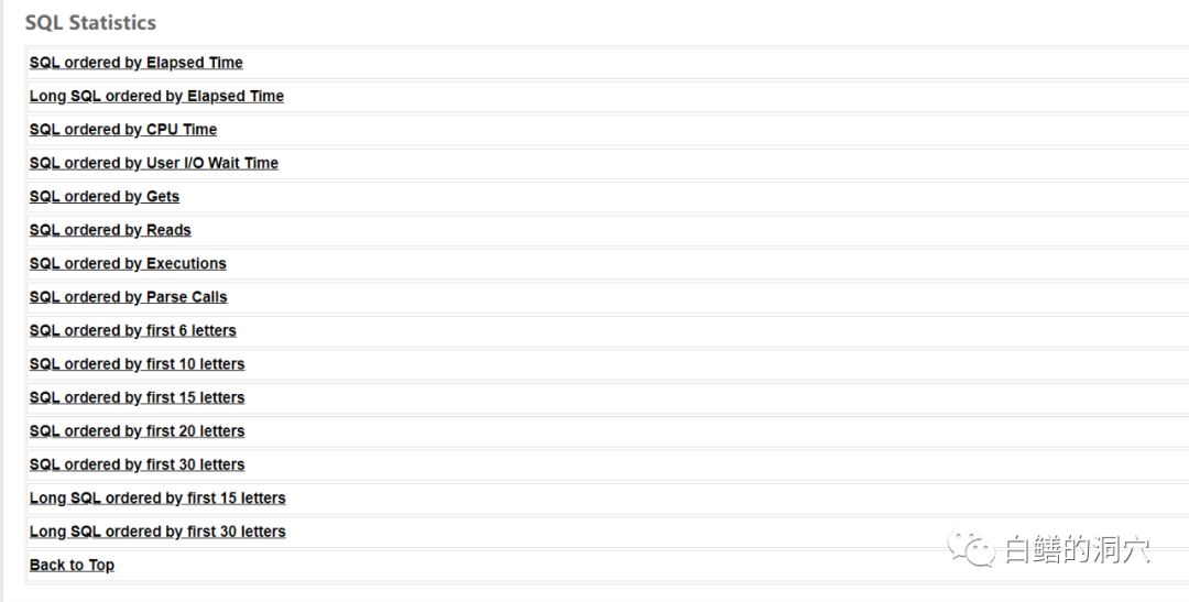 再往下的部分是TOP SQL的情况,和AWR几乎如出一辙,这里就不展开分析了。