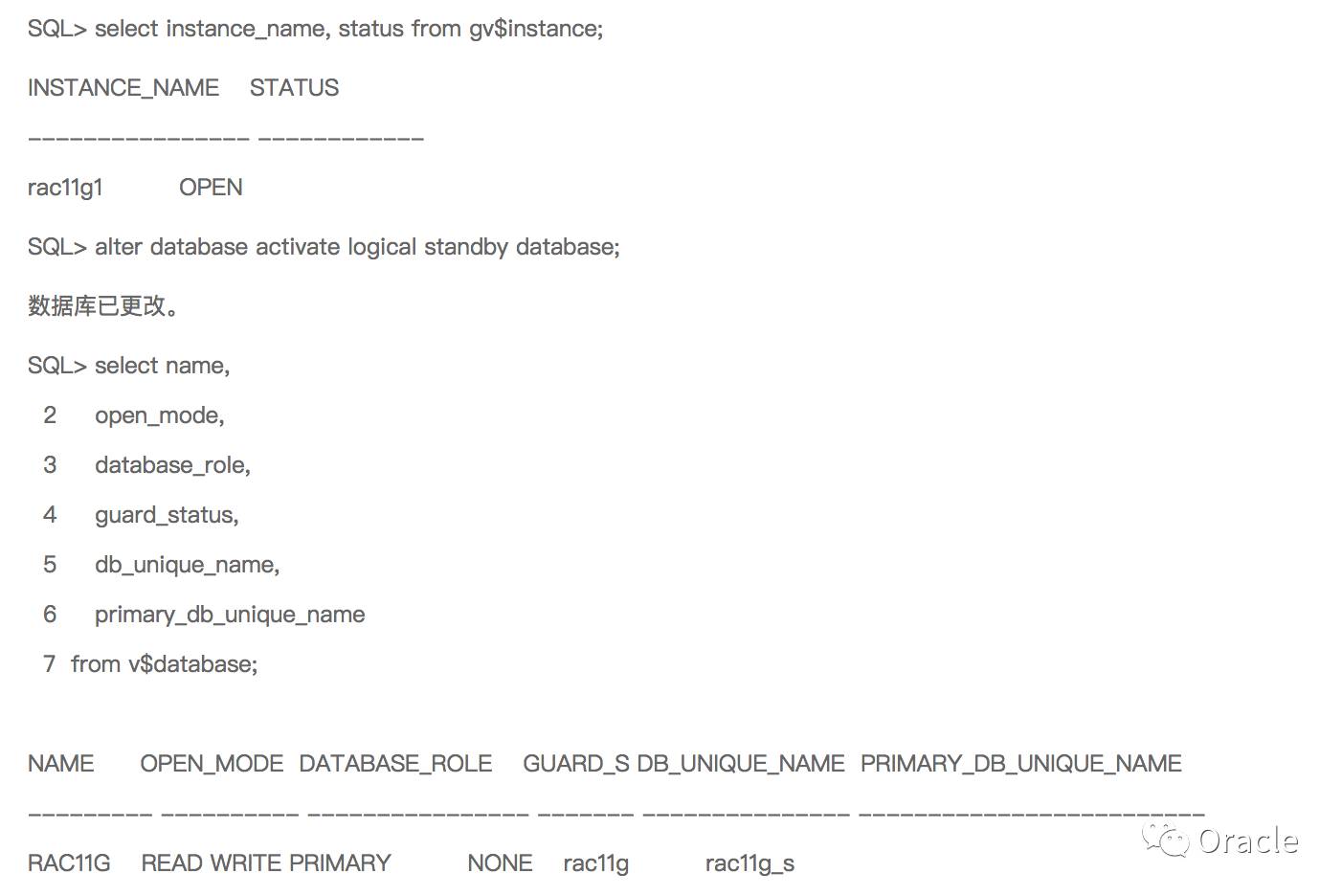 如果希望LOGICAL STANDBY应用完所有的日志在切换为主库,可以在ALTER DATABASE ACTIVATE语句最后添加FINISH APPLY语句。