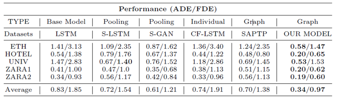 (4) 基于时空图的方法:SAPTP使用基于时空图的方法来关联时间和空间信息并获得了不错的结果。尽管如此,他们还是使用完全图来模拟人与人之间的交互,完全图连接所有人之间的交互,这将花费多余的计算能力。于是在该论文中,作者旨在解决上述方法存在的问题,从而提升行人轨迹预测的准确率。