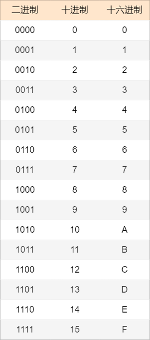 为了方便理解,可以查看下面的进制转换表。