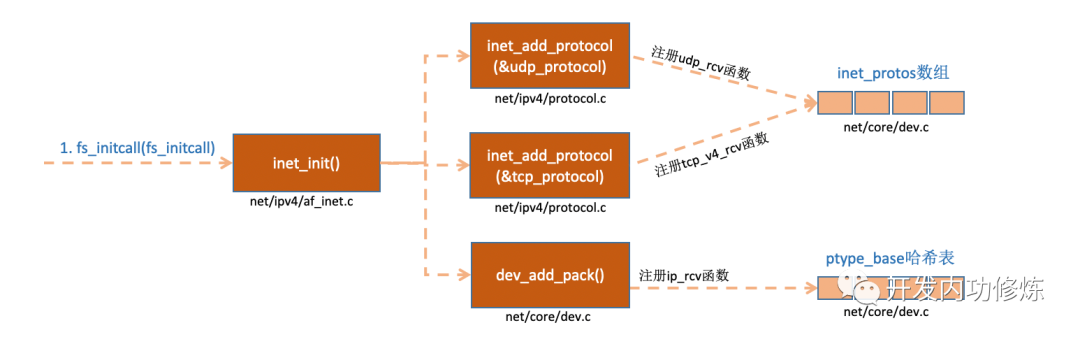 内核实现了网络层的ip协议,也实现了传输层的tcp协议和udp协议。这些协议对应的实现函数分别是ip_rcv(),tcp_v4_rcv()和udp_rcv()。和我们平时写代码的方式不一样的是,内核是通过注册的方式来实现的。Linux内核中的fs_initcall