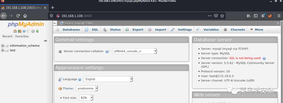 访问对应端口,发现都不需要输入密码直接进去了,那么这里方式就比较多了,提供的思路为使用CVE-2018-12613,漏洞网上已经有师傅分析了,这里就复现一波,具体分析文章为:http://sunu11.com/2018/07/25/22/