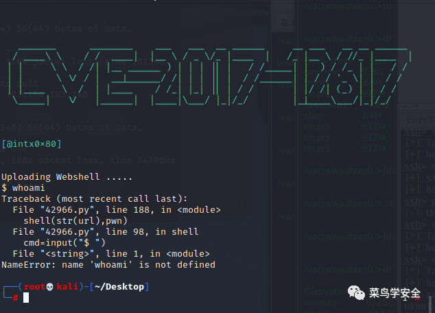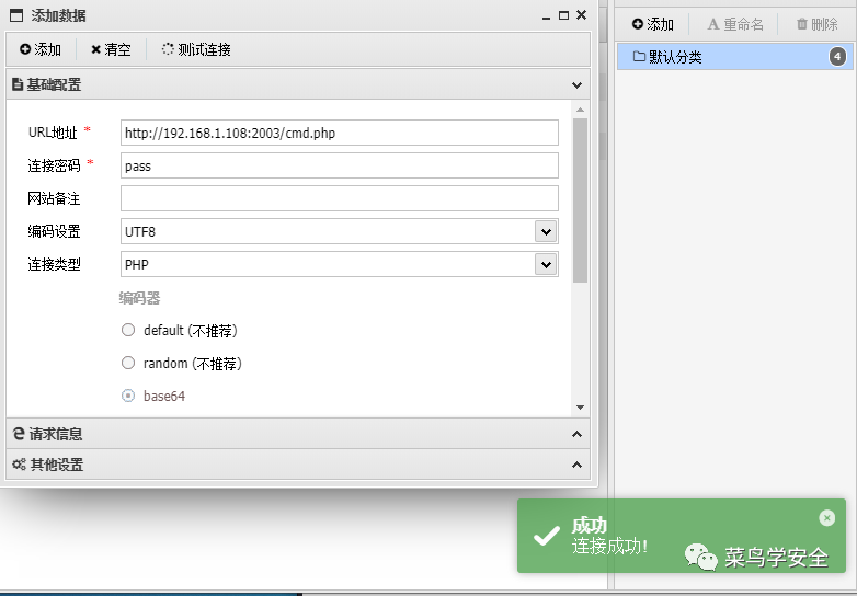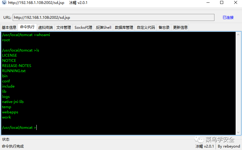 但是这里出现了小插曲,可能由于是docker的原因,这里并没有成功上线,更换了webshell工具也是不行的,测试本机都是可以的。