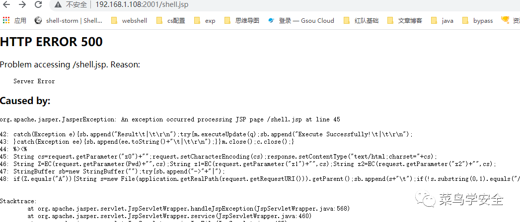 访问后发现返回500,只能说他这个马应该有点问题,利用漏洞应该是没问题的。