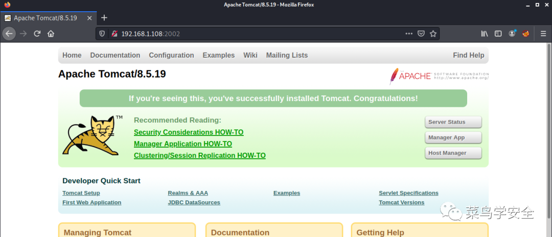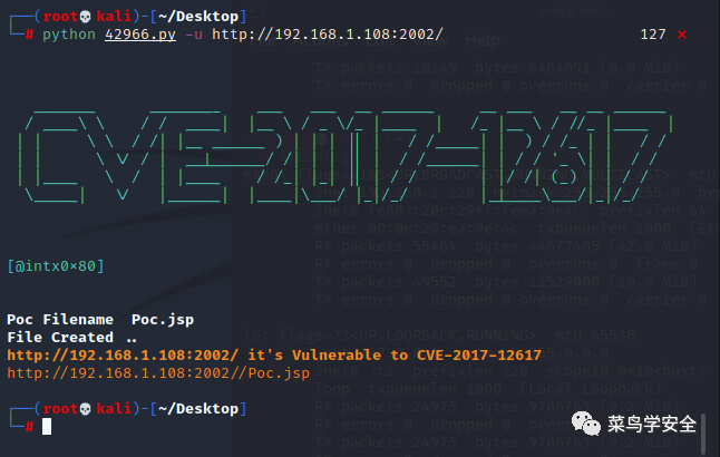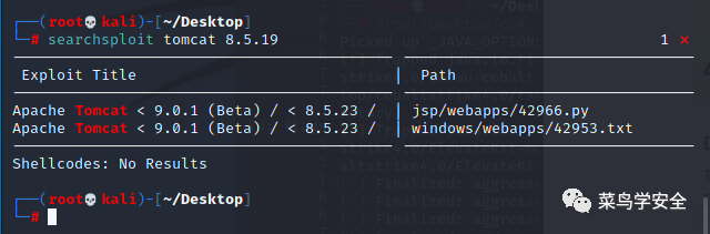 可以看到这里是8.5.19的Tomcat,一般看到这种都是找一找版本漏洞。这里kali中已经有了相关版本的poc。