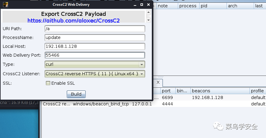 cs是不自带liunx的上线方式的,但这里还是想上线,使用CrossC2插件上线。