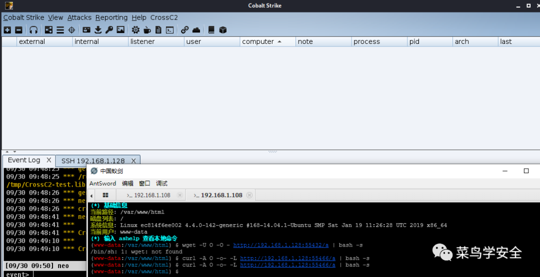 这下应该可以上线cs了吧,还是刚刚的套路,通过curl无文件上线,成功上线。