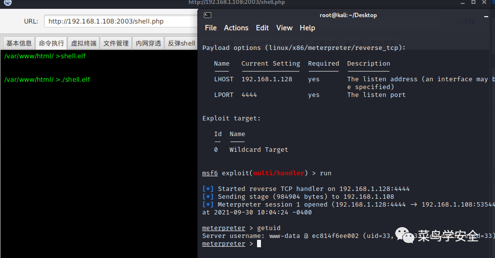 生成elf文件后上传到web根目录下,并chmod命令修改权限为777。