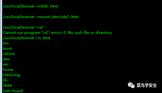 创建一个目录test,将/dev/sda1挂载到新建的目录下